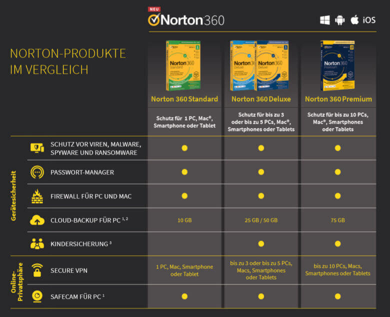 Norton 360 Deluxe – Umfassender Virenschutz und Privatsphäre für 3 Geräte. Egal, ob PC, Mac, Tablet oder Smartphone.